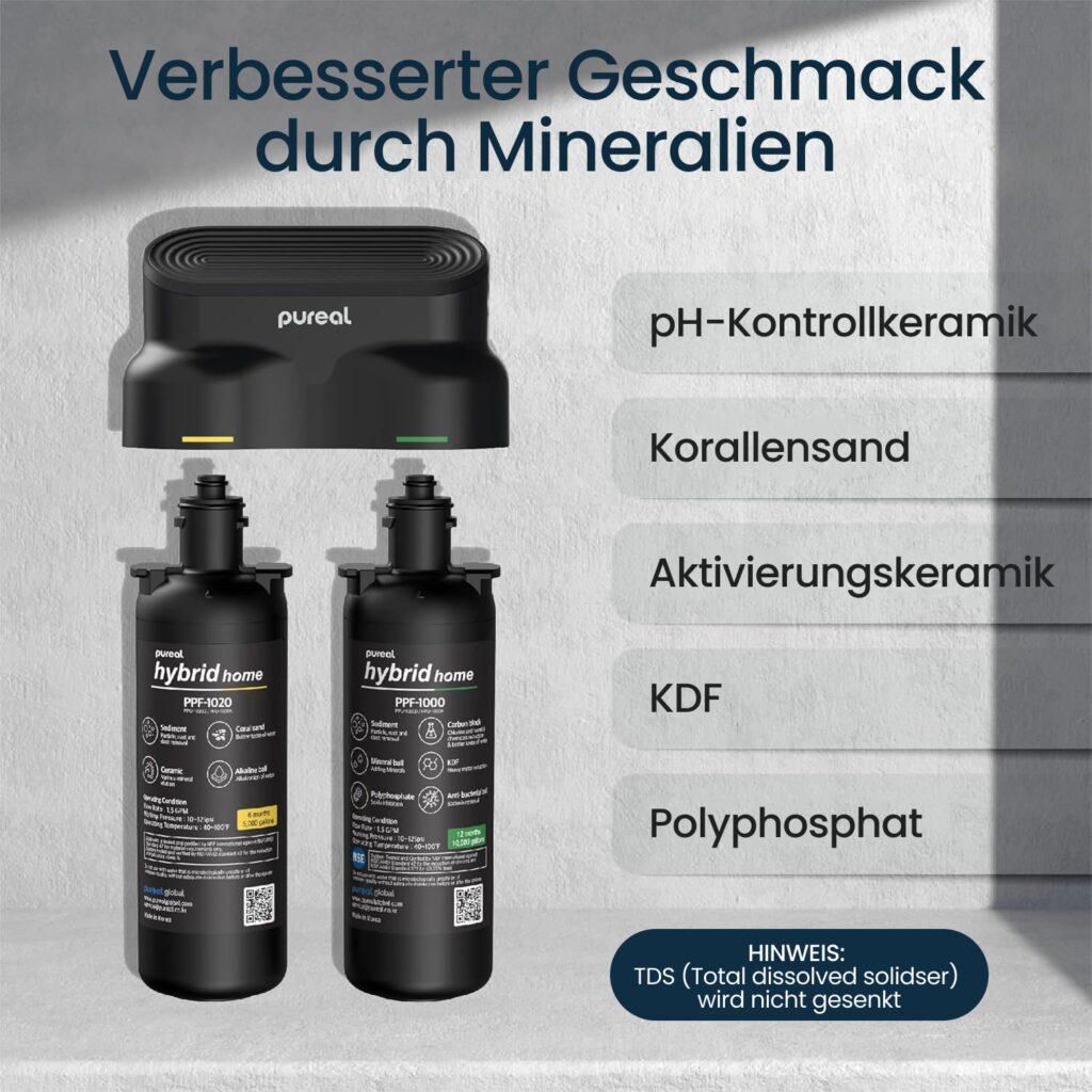 Dieses System reduziert NICHT den TDS-Wert, aber es bietet einen besseren Wassergeschmack und wichtige Mineralien wie Kalzium, Kalium, Natrium und Magnesium bleiben erhalten.